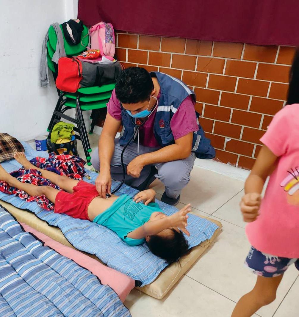 El secretario de Salud, Flavio Carlos Rosado, informó que personal médico realizó intervenciones en crisis y primeros auxilios psicológicos a los refugiados para abordar las secuelas emocionales inmediatas provocadas por la emergencia.