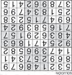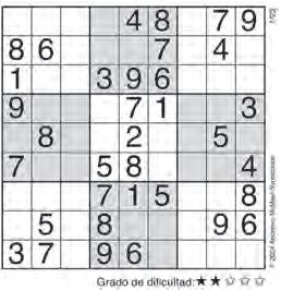Complete el recuadro de tal manera que cada fila, columna y cuadro de 3x3 tengan los números del 1 al 9.