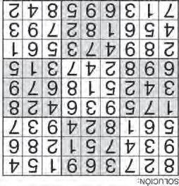 Complete el recuadro de tal manera que cada fila, columna y cuadro de 3x3 tengan los números del 1 al 9.