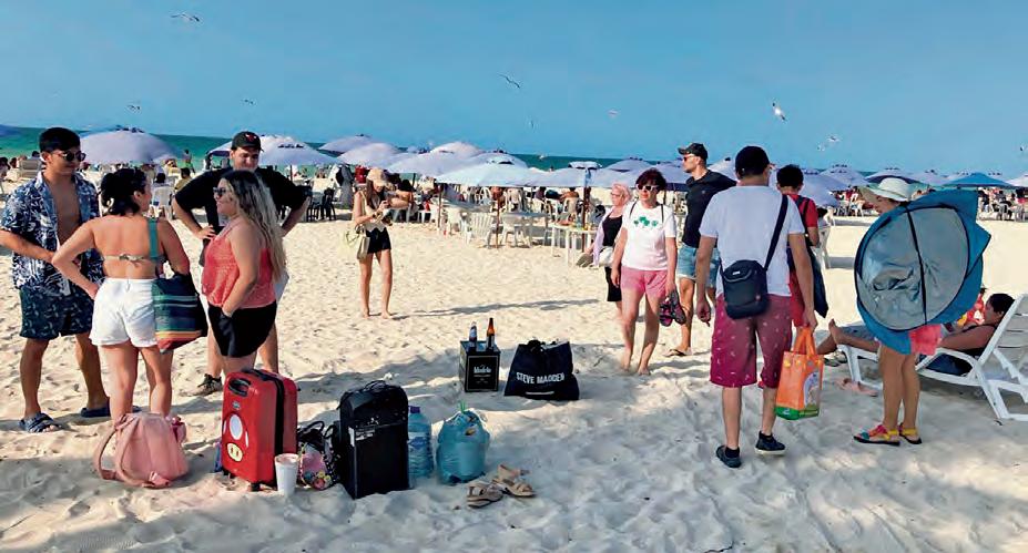 A tres días del inicio de Semana Santa, las playas de Cancún lucen con numerosos bañistas desde temprano. En la imagen, la playa pública de Gaviota Azul, frente a Plaza Forum.