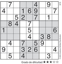 Complete el recuadro de tal manera que cada fila, columna y cuadro de 3x3 tengan los números del 1 al 9.