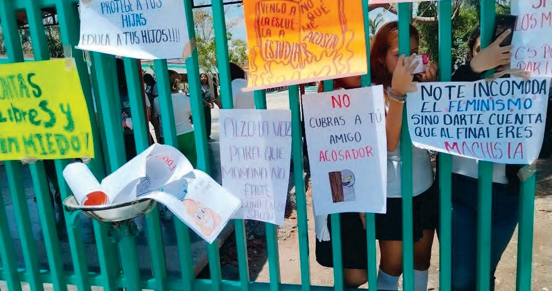 ACCIONES. Estudiantes de la institución formaron parte de la manifestación para reclamar una pronta solución al acoso del que son víctimas.