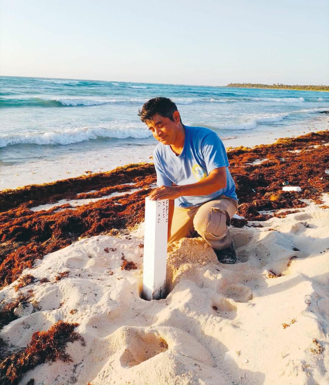 Héctor Lizárraga Cubedo, director del Centro Ecólogico Akumal (CEA), informó que la de Akumal fue testigo de la primera anidación de tortugas marinas, se recibió una notificación por parte de los miembros de seguridad el 19 de abril. “Una voluntaria del CEA llamada Lidia Pech y la coordinadora del Campamento Tortuguero, Claudia León, llegaron a la playa para