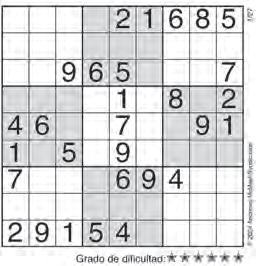 Complete el recuadro de tal manera que cada fila, columna y cuadro de 3x3 tengan los números del 1 al 9.
