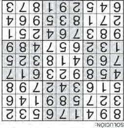 Complete el recuadro de tal manera que cada fila, columna y cuadro de 3x3 tengan los números del 1 al 9.
