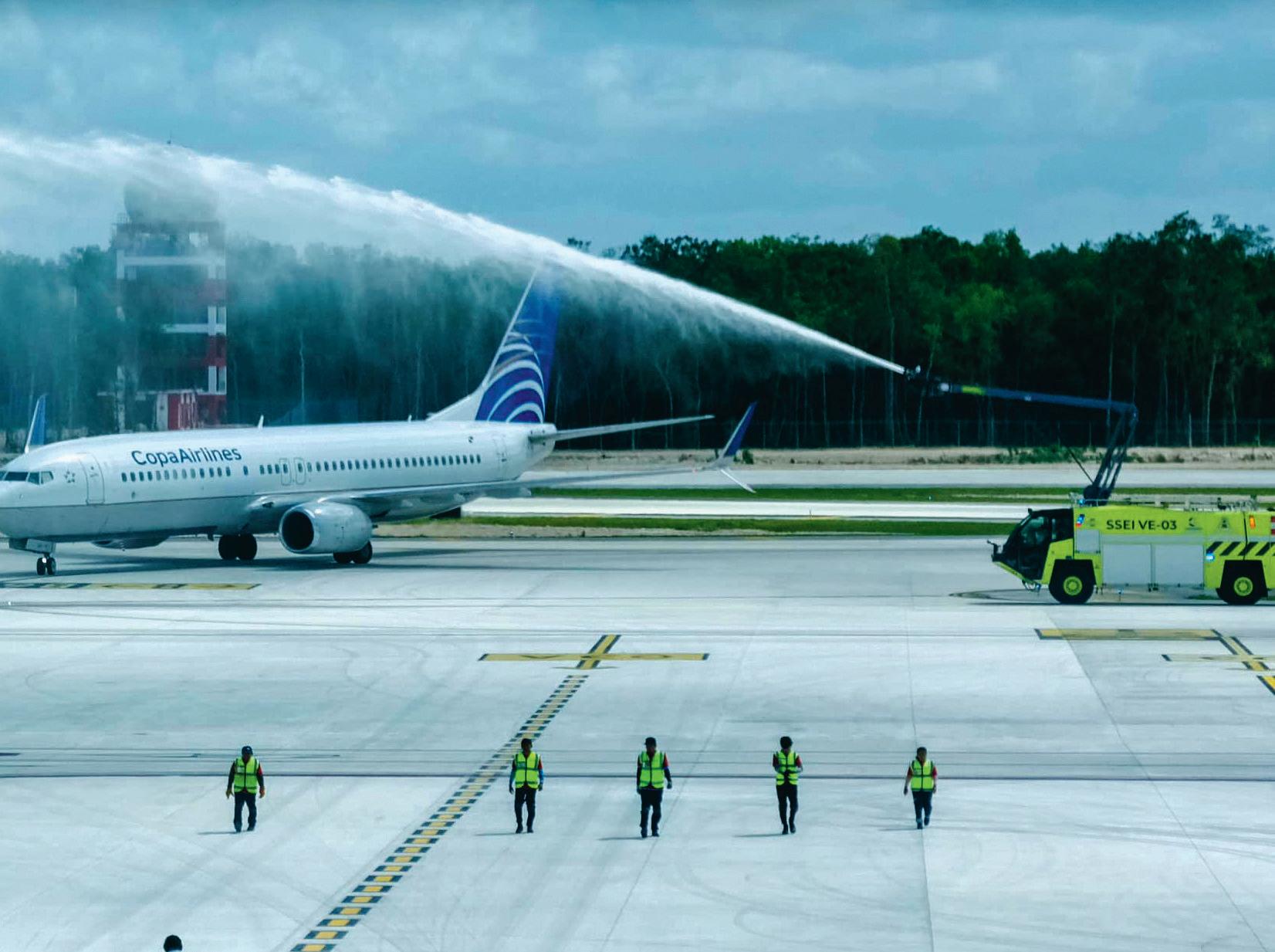 El aeropuerto internacional Felipe Carri llo Puerto de Tulum, recibió el miércoles el primer vuelo de Copa Airlines, convir tiéndose en la primera aerolínea en conectar la parte sur de Quintana Roo con el Hub de las Américas en Panamá y con más de 60 destinos en América Latina.