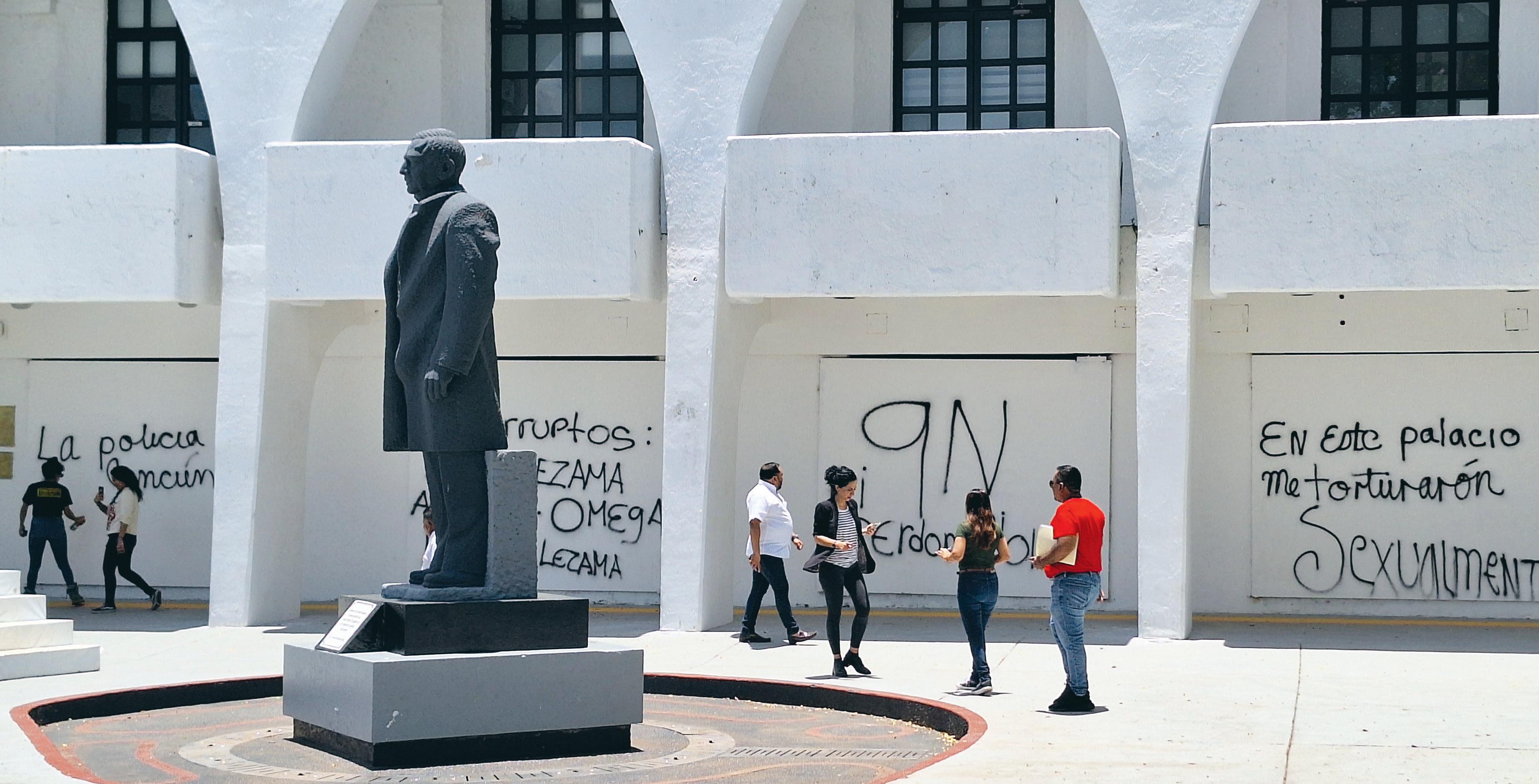 Casi 100 elementos policiales, entre municipales y estatales, comenzaron a disolver a la masa de gente después de que un grupo de manifestantes comenzó a quemar documentación que extrajeron de una oficina del palacio municipal. La Guardia Nacional no intervino.