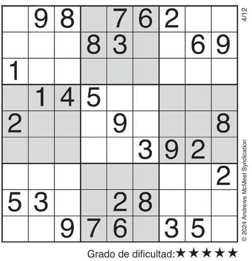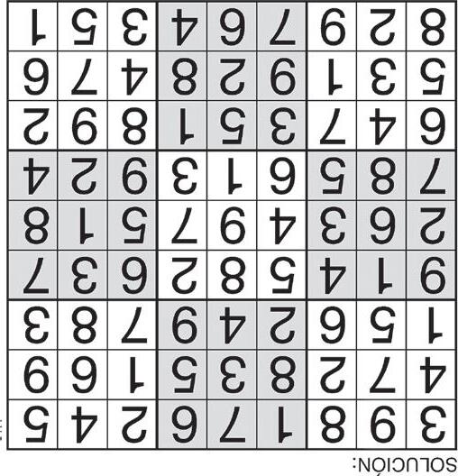 Complete el recuadro de tal manera que cada fila, columna y cuadro de 3x3 tengan los números del 1 al 9.