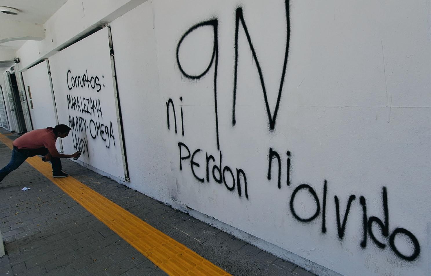 El Comité de Víctimas del 9N, se manifestó en la Plaza de la Reforma del municipio de Benito Juárez, en donde realizaron pintas de protesta y exhortaron a los diputados de la XVII Legislatura del Congreso del estado de Quintana Roo, a que no violenten de manera irreparable los derechos humanos y que no den por cumplida la recomendación emitida por la Comisión de Derechos Humanos estatal (Cdheqroo).