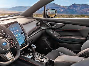 Al interior ofrece asientos abatibles 40/20/40, asientos de UltraSuede con detalles STi. También hay una pantalla de 11.6 pulgadas con sistema Starlink 3.0, compatibilidad con Android Auto y Apple Carplay, sistema de sonido Harman Kardon y asientos con detalles deportivos. Su espacioso cuenta con asientos traseros divididos en proporción y ocho bolsas de aire, frenos de disco ventilados en las cuatro ruedas con frenos ABS y BA, control de tracción y estabilidad, además de la suite de asistencias a la conducción Eyesight 4.0.