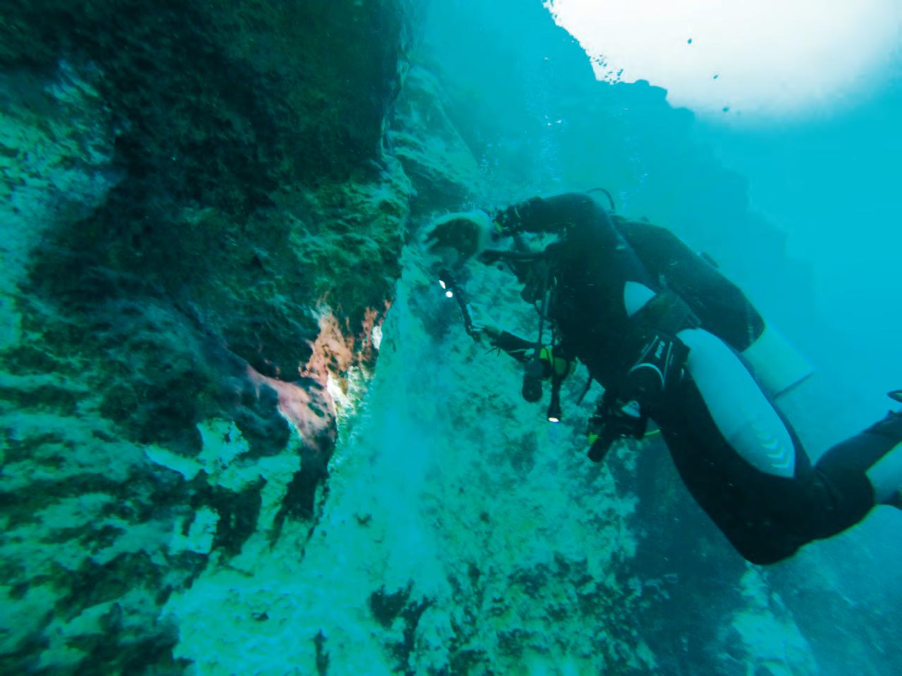metros, la temperatura comienza a aumentar, indicando posibles profundidades mayores”, señaló el doctor. Además, el agujero azul muestra características únicas en su formación. Los incrementos de ácido sulfhídrico y la actividad bacteriana en profundidades extremas sugieren que Taam Ja’ se está formando desde abajo hacia arriba, una característica peculiar que lo distingue de otros agujeros azules conocidos, agregó el científico.