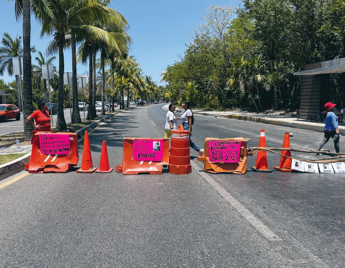 Desde la noche del martes, el colectivo de Madres Buscadoras, se instaló en el kilómetro 1.5 del Boulevard Kukulcán, para bloquear la arteria en el sentido que va del centro de la ciudad a Playa Delfines, esto con la finalidad de exigir la entrega de una menor a su madre y presionar a las autoridades para que giren una orden de aprehensión en contra del presunto violador de la niña de cuatro años, quien es su padre y obtuvo su custodia temporal.