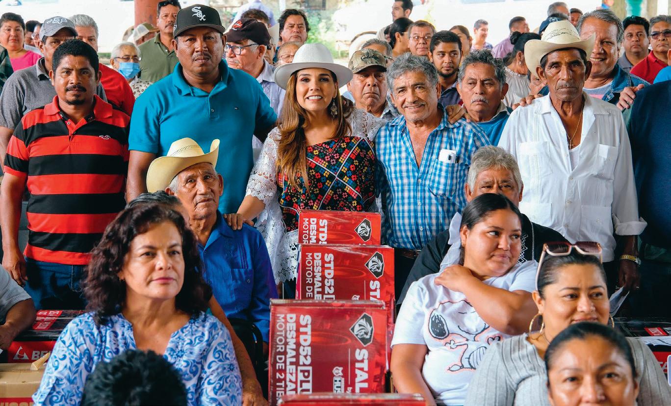 el Gobierno del estado y los productores, con la finalidad de incrementar la capacidad productiva de sus unidades. Se han entregado mil 261 apoyos en especie con insumos y herramientas, entre ellas a 342 mujeres, para fortalecer la producción en 163 localidades de Othón P. Blanco, Lázaro Cárdenas, Bacalar, José María Morelos y Felipe Carrillo Puerto. Aguilar Osorio detalló que se trata de más de 20 conceptos diferentes en insumos, como más de 70 bombas sumergibles, 58 generadores eléctricos, y semilla de maíz elotero para atención de 208 hectáreas.