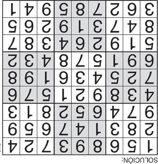 Complete el recuadro de tal manera que cada fila, columna y cuadro de 3x3 tengan los números del 1 al 9.