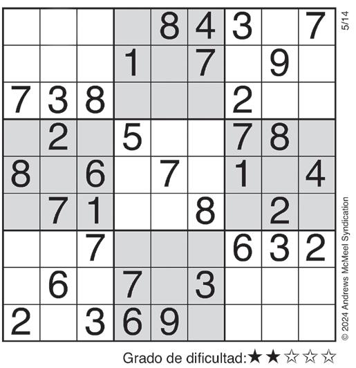 Complete el recuadro de tal manera que cada fila, columna y cuadro de 3x3 tengan los números del 1 al 9.