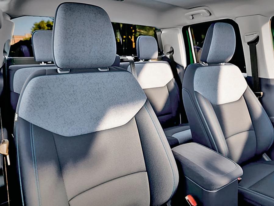 Por dentro, los asientos tienen costuras de color azul y amarillo, además de un