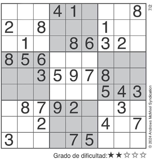 Complete el recuadro de tal manera que cada fila, columna y cuadro de 3x3 tengan los números del 1 al 9.