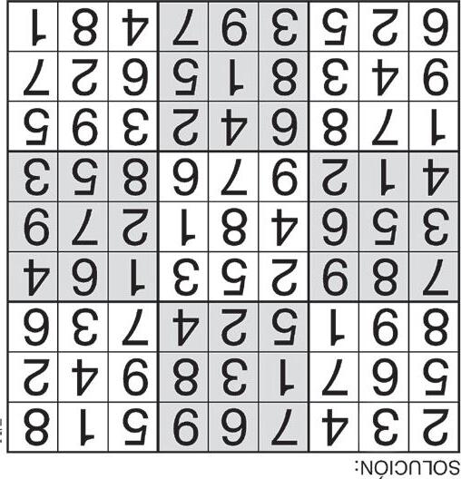 Complete el recuadro de tal manera que cada fila, columna y cuadro de 3x3 tengan los números del 1 al 9.