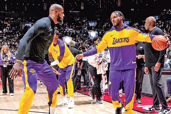 Bronny James, el hijo de 20 años de la superestrella de la NBA LeBron James, formará parte del equipo de Los Angeles Lakers en la G-League, anunció este jueves el equipo. Bronny se transformó en parte del único dúo padre-hijo que ha jugado en la NBA en un mismo equipo. LeBron, de 39 años y cuatro veces campeón de la NBA, jugó junto a su hijo por primera vez el 22 de octubre. Mientras que Bronny James anotó su primera canasta en la NBA en la derrota 134-110 en Cleveland el 30 de octubre y participó en cuatro encuentros de la presente temporada. El menor de los James se despediría, por ahora, del primer equipo de los Lakers disputando el viernes, en casa, un partido contra los Philadelphia 76ers. /AFP