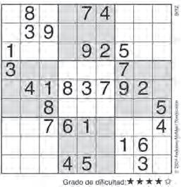 Complete el recuadro de tal manera que cada fila, columna y cuadro de 3x3 tengan los números del 1 al 9.