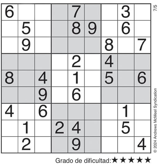 Complete el recuadro de tal manera que cada fila, columna y cuadro de 3x3 tengan los números del 1 al 9.