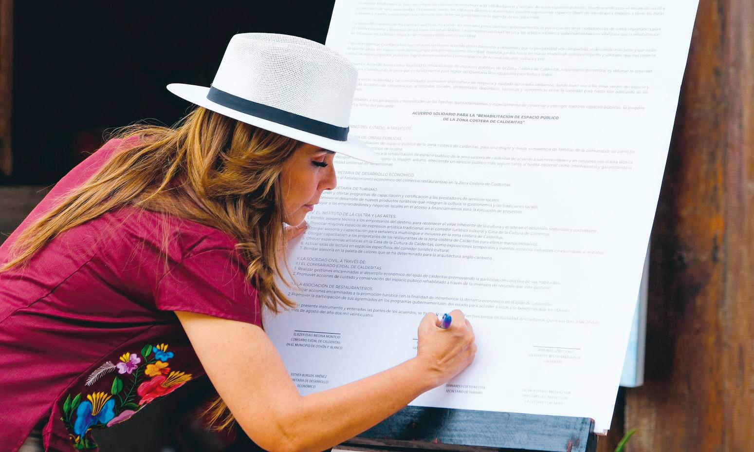 paralelamente se desarrollarán acciones y se implementará una estrategia de branding que posicionará a Calderitas como un destino único. Sedetur ofrecerá cursos de capacitación y certificación a prestadores de servicios; Sede brindará esquemas de financiamiento y capacitación empresarial; el ICA asesoría técnica para reconocer el valor inherente de la cultura y el arte a fin de provocar más espacios de expresión cultural. Además de los secretarios Irazú Sarabia, de Seop; Bernardo Cueto, de Sedetur; Esther Burgos, de Sede; Lilian Villanueva, directora de ICA, firmaron el Acuerdo Eliezer Medina, presidente del Comisariado Ejidal y Apolinar Gómez, presidente de la Asociación de Restauranteros de Calderitas./ 24 HORAS