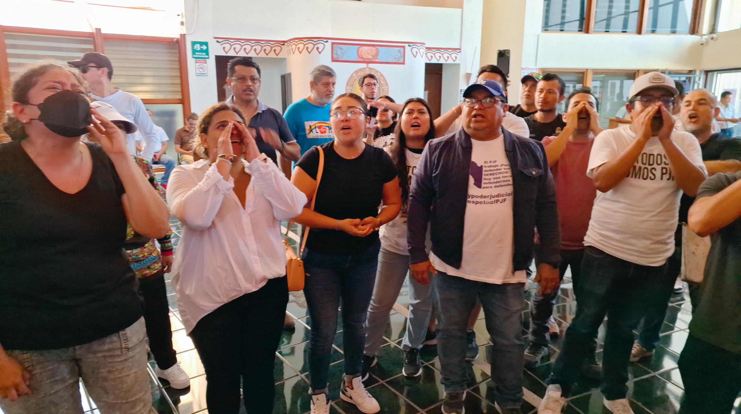 Desde temprano, un grupo de más de 50 de empleados del Poder Judicial se concentró en el lobby del Congreso de Quintana Roo, en un intento por detener la sesión.