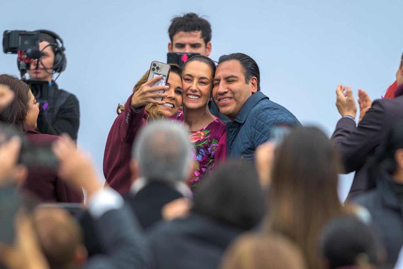 En la Plaza de la Constitución, frente al Palacio Nacional, en la Ciudad de México, se dieron cita las gobernadoras y los gobernadores del país, así como funcionarios federales, representantes de las fuerzas armadas, de los diversos sectores sociales del país, para escuchar a la primera Presidenta de México.