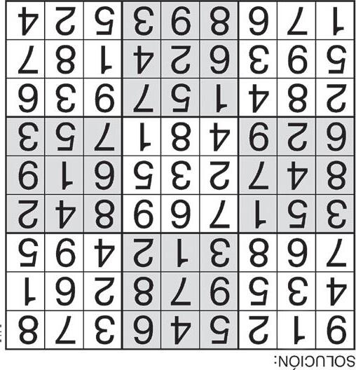 Complete el recuadro de tal manera que cada fila, columna y cuadro de 3x3 tengan los números del 1 al 9.