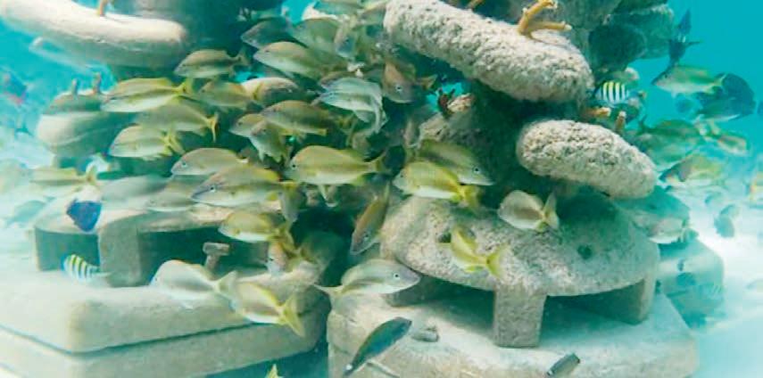 les para promover la recuperación del sistema”, indicó. Se estudiaron además de la temperatura, la profundidad por la actividad de esnorqueleo en la zona, entre otras actividades acuáticas y lo que se requiere es mover al turismo al punto donde se encuentran las piezas artificiales, que ayudarán a la proliferación de peces y a disminuir la erosión de las costas. En es ta área ya hay por parte del Museo Subacuático (Musa) 18 esculturas, pero la peculiaridad de estas piezas es que están hechas con carbono que no contamina el mar, amigables con el medio ambiente, con la finalidad de que la descarga de los arrecifes artificiales se vaya mitigando con el tiempo las visitas de las actividades acuáticas. / LICETY