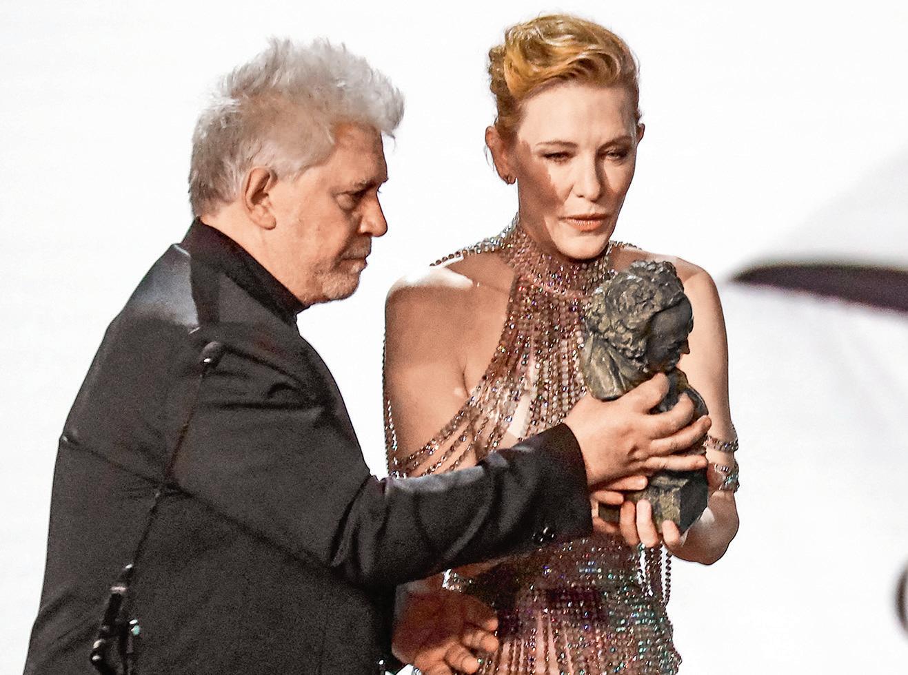 de Cine Europeo, cinco Bafta, cuatro César, cinco Goyas y dos David de Donatello, y ha sido galardonado en los festivales de Cannes, Berlín, Venecia y San Sebastián. Curiosamente, fue Almodóvar quien entregó sus premios Donostia a Al Pacino, Woody Allen y Antonio Banderas.