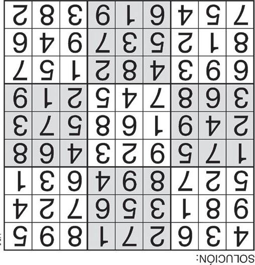 Complete el recuadro de tal manera que cada fila, columna y cuadro de 3x3 tengan los números del 1 al 9.