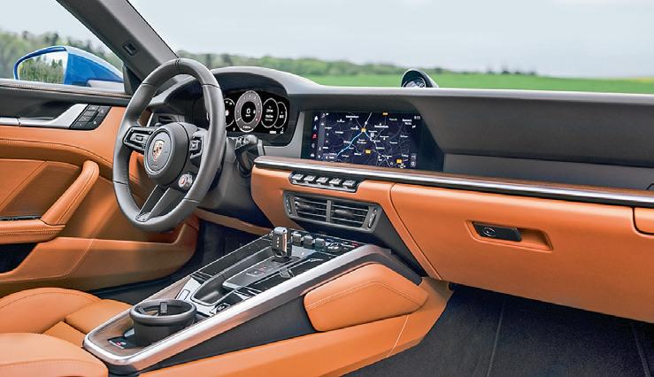 Porsche ha diseñado el nuevo 911 como un biplaza estándar, aunque se puede optar por una configuración 2+2 sin costo adicional. Los elementos de control esenciales están directamente en el volante o a su alrededor. Estos incluyen, por primera vez en el 911, un botón de arranque, situado, como es habitual, a la izquierda del volante. La consola central incorpora un compartimento refrigerado para teléfonos móviles con función de carga inductiva.