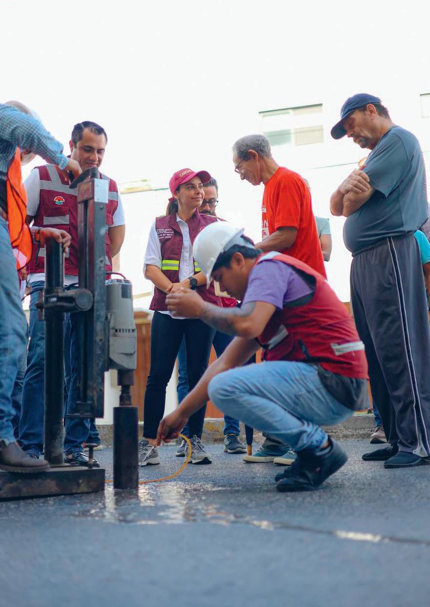 En ese sitio, Peralta de la Peña observó la extracción de muestras realizadas al grosor de la renovada carpeta asfáltica de siete centímetros de espesor que está siendo colocada en la nueva vialidad.
