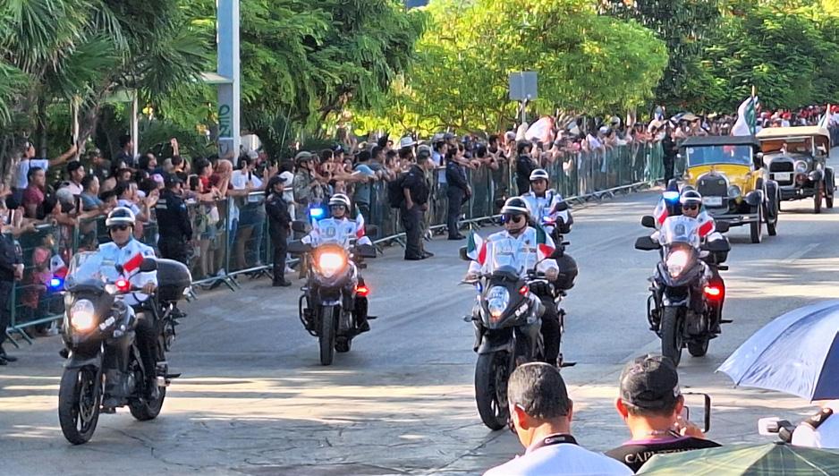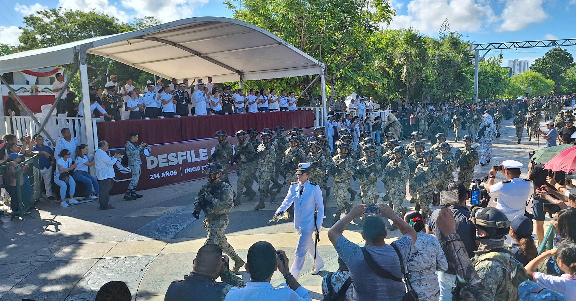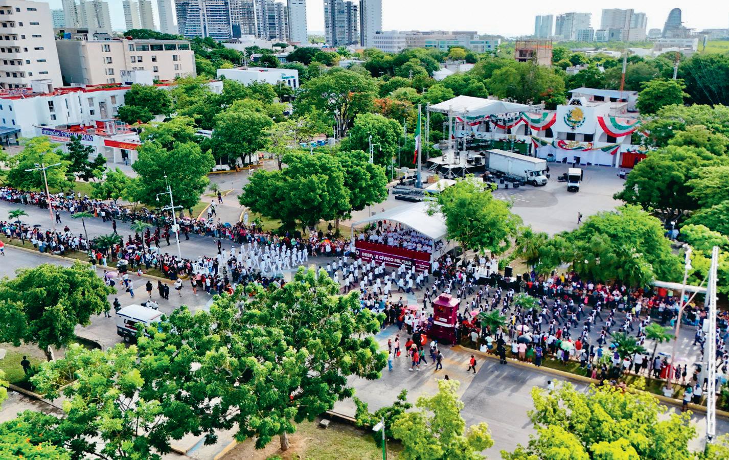 DESFILE. Encabezado por la presidenta municipal de Benito Juárez, el lunes marcharon por la avenida Tulum más de 8 mil personas, por el aniversario 214 de la Independencia de México. Integraron el contingente Ejército Mexicano, Guardia Nacional y estudiantes LOCAL P.6