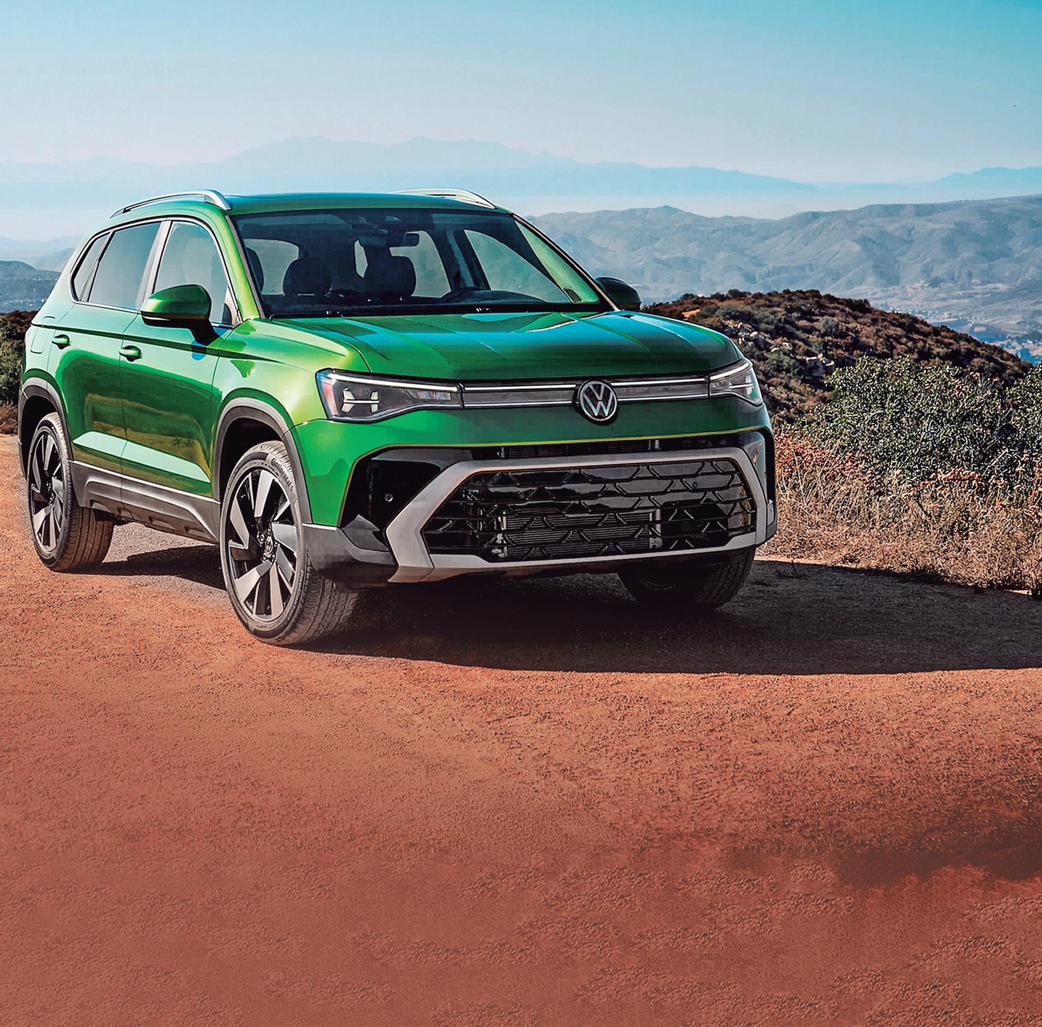 una parrilla gigante que está enmarcada por un contraste en color plata y negro. También los faros se adelgazan considerablemente y adoptan formas más cuadradas, mientras la tira de luz LED que une a las luces de conducción diurna sigue estando presente. Las dimensiones son similares, probablemente iguales a las del modelo 2024 y anteriores. Es decir, con 4.4 metros de largo, 1.8 de ancho, 1.6 de largo y una cajuela con capacidad de 500 litros. En terminos de comepetencia, el Taos busca ofrecer lo mejor para estar el