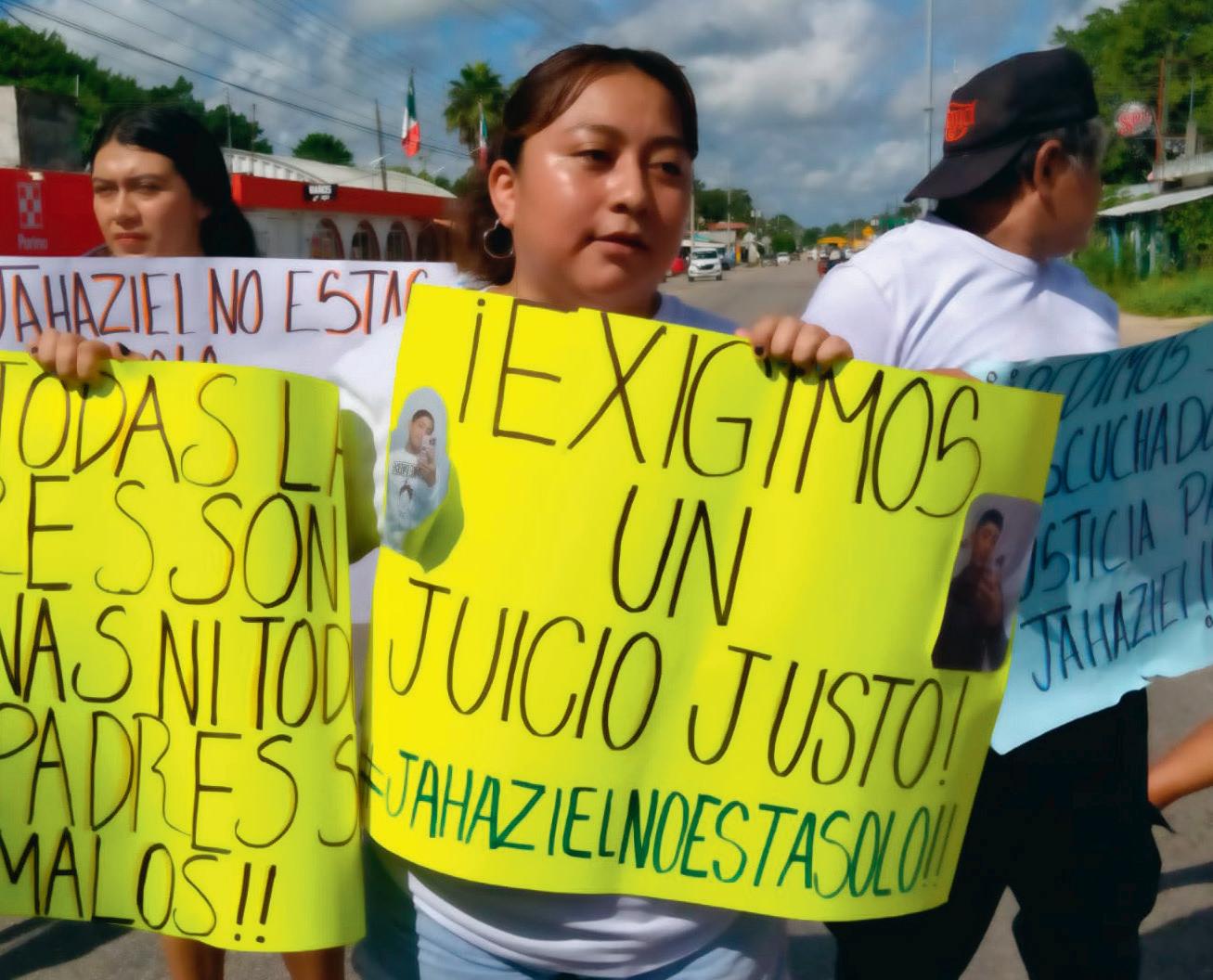 Familiares y amigos de J.N.C.R., quien actualmente se encuentra de tenido bajo acusaciones que consi deran injustas, llevaron a cabo una protesta bloqueando el tramo ca rretero en la salida de la comunidad Ignacio Zaragoza, en Lázaro Cárde nas, con dirección a Cancún.