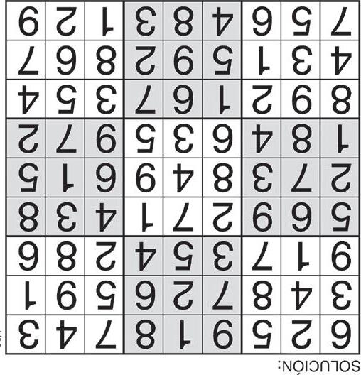 Complete el recuadro de tal manera que cada fila, columna y cuadro de 3x3 tengan los números del 1 al 9.