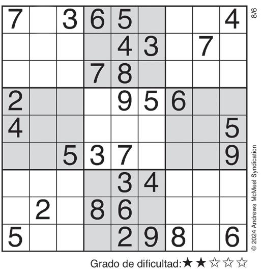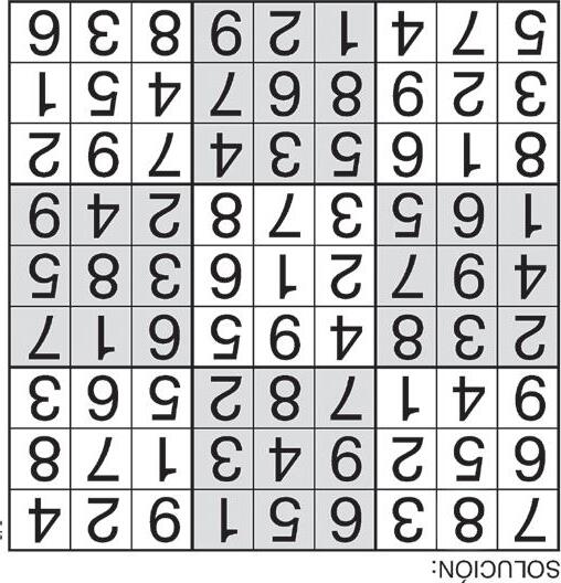 Complete el recuadro de tal manera que cada fila, columna y cuadro de 3x3 tengan los números del 1 al 9.