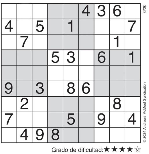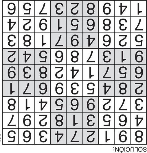 Complete el recuadro de tal manera que cada fila, columna y cuadro de 3x3 tengan los números del 1 al 9.
