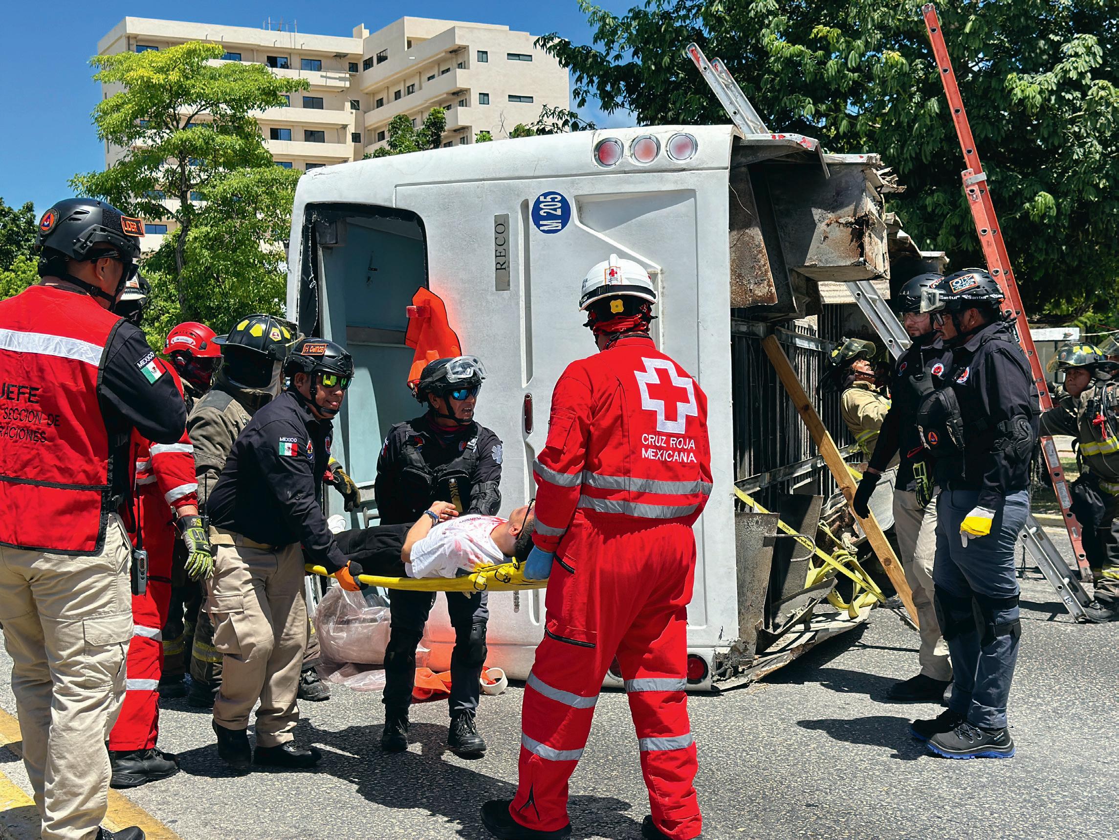 151 hombres; tuvimos siete menores, dos personas con discapacidad y siete adultos mayores”, detalló Antonio de Jesús Riveroll Ribbon, director municipal de Protección Civil. La hipótesis del accidente vehicular inició a las 12:06 horas, una volcadura con múltiples heridos en la que participaron 80 elementos de Protección Civil, divididos en: Unidad de Rescate, Unidad de Seguridad, Unidad de Extracción y Ambulancia de Protección Civil, con el apoyo de los elementos de Bomberos, Cruz Roja, el Escuadrón de Rescate y Urgencias Médicas (ERUM), la Dirección de Tránsito y la Secretaría de Marina.