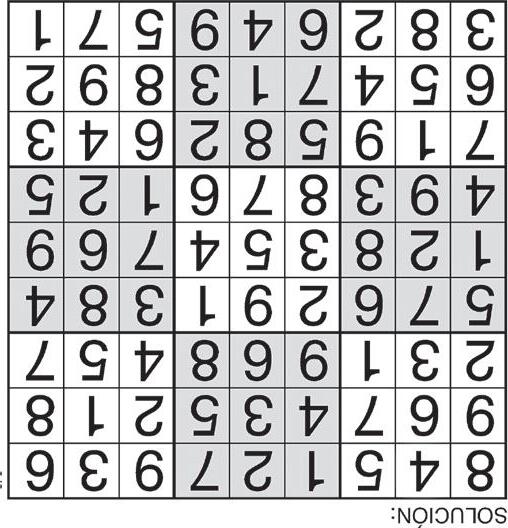 Complete el recuadro de tal manera que cada fila, columna y cuadro de 3x3 tengan los números del 1 al 9.