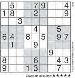 Complete el recuadro de tal manera que cada fila, columna y cuadro de 3x3 tengan los números del 1 al 9.