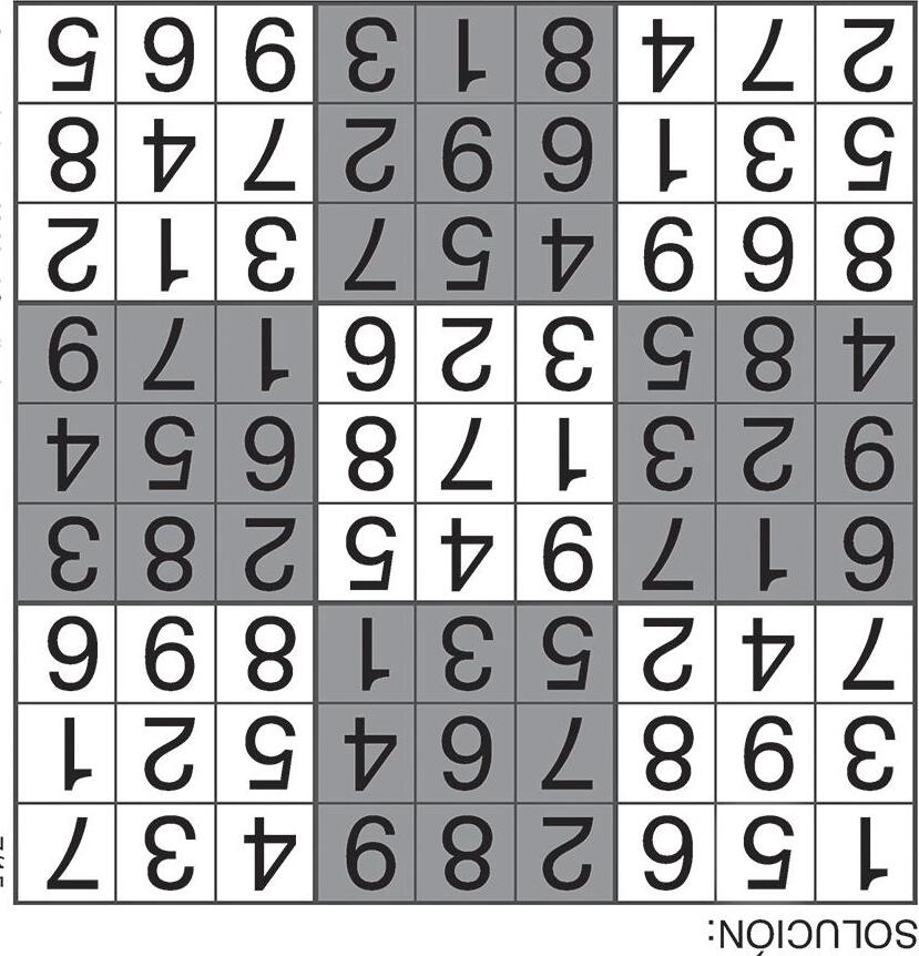 Complete el recuadro de tal manera que cada fila, columna y cuadro de 3x3 tengan los números del 1 al 9.
