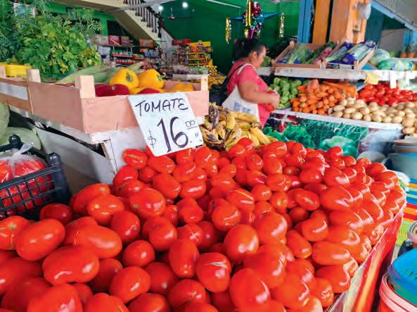Entre los pocos productos que han bajado su costo se encuentran el tomate, que se comercializa entre 18 y 20 pesos, y la papa blanca, que se mantiene alrededor de 34 pesos por kilo.