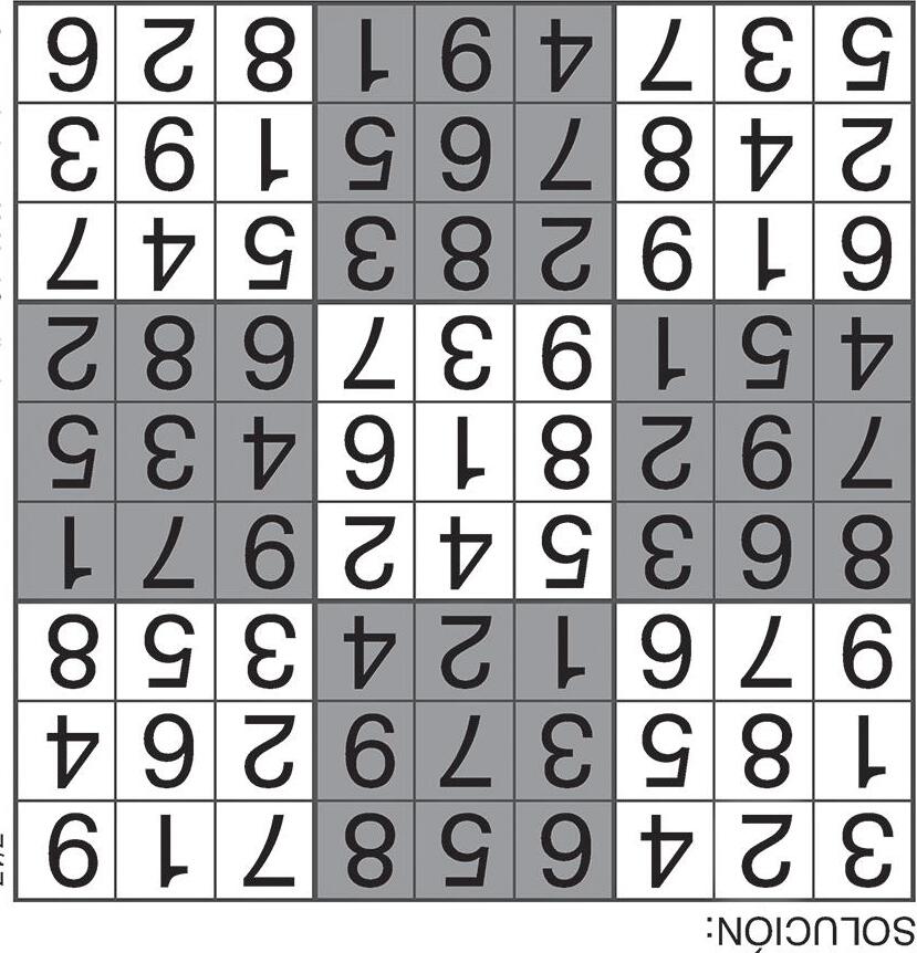 Complete el recuadro de tal manera que cada fila, columna y cuadro de 3x3 tengan los números del 1 al 9.