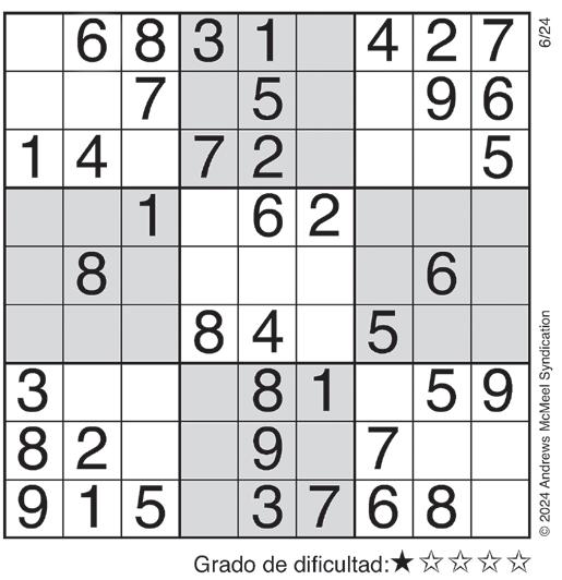 Complete el recuadro de tal manera que cada fila, columna y cuadro de 3x3 tengan los números del 1 al 9.