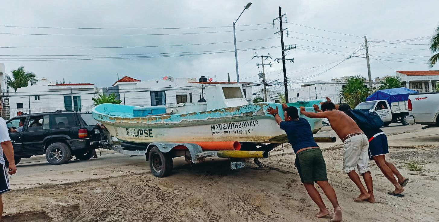 “Las distribuimos en varias partes, unas van hacia el puerto de abrigo de la laguna Nichupté, otras las llevan a Isla Mujeres y otras llevan a los pasillos de la terminal portuaria de la Administración Portuaria Integral de Quintana Roo (Apiqroo) que hay aquí, mientras que otros resguardan las embarcaciones en sus casas”, detalló. Por su parte los pescadores de Puerto Juárez hicieron su tarea sacando los barcos del mar y dejándolos en los arenales, llevando sus motores a resguardo. / LICETY DÍAZ
