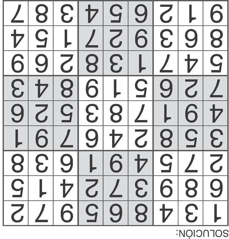 Complete el recuadro de tal manera que cada fila, columna y cuadro de 3x3 tengan los números del 1 al 9.
