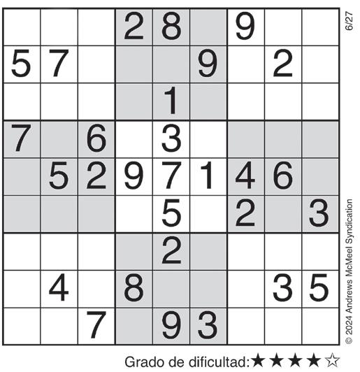 Complete el recuadro de tal manera que cada fila, columna y cuadro de 3x3 tengan los números del 1 al 9.